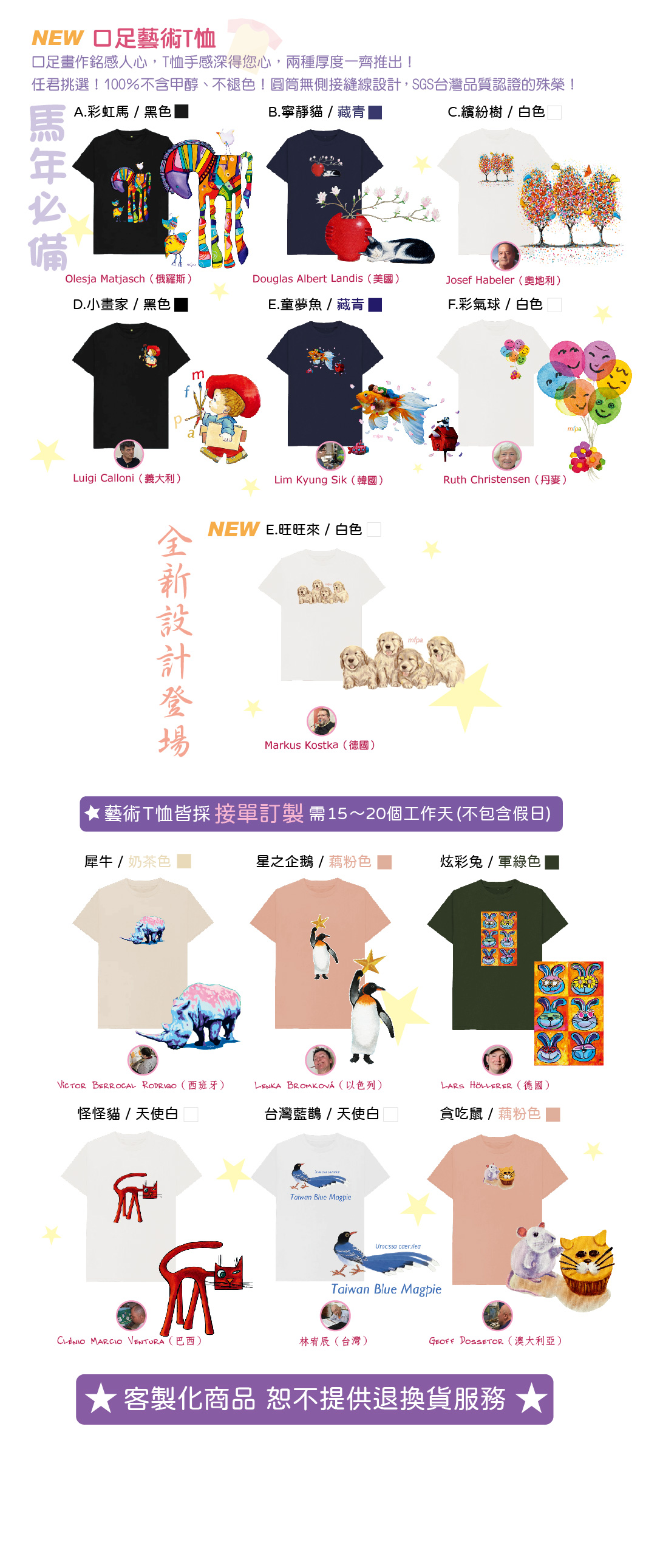 藝術T恤皆採接單訂製需15~20個工作天(不包含假日)